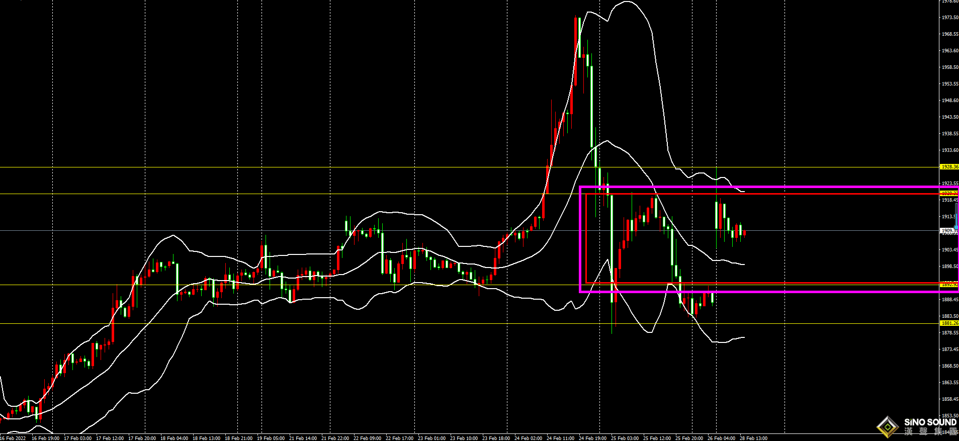 今日早間現貨黃金高開低走,交投于1910上方。烏克蘭危機在周末進一步加深,俄羅斯總統普京將俄羅斯的核威懾力量置于高度警戒狀態,多國宣布將對俄航班關閉領空,而西方盟國決定有選擇地阻止俄羅斯銀行進入SWIFT支付系統。不過值得欣慰的是,俄烏雙方已經準備開始新一輪談判,市場避險情緒有所降溫。