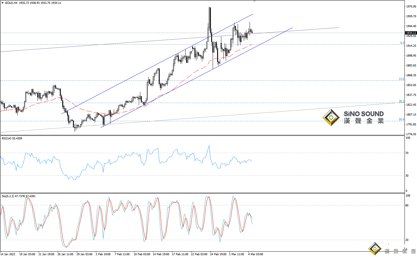 50天指數移動平均線繼續對現貨黃金投資市場的上升浪構成支持,目前金價在走勢圖中的上升通道內運行,所以趨勢會一直保持有效,除非金價跌破1916.25和1910.00這兩個水平。