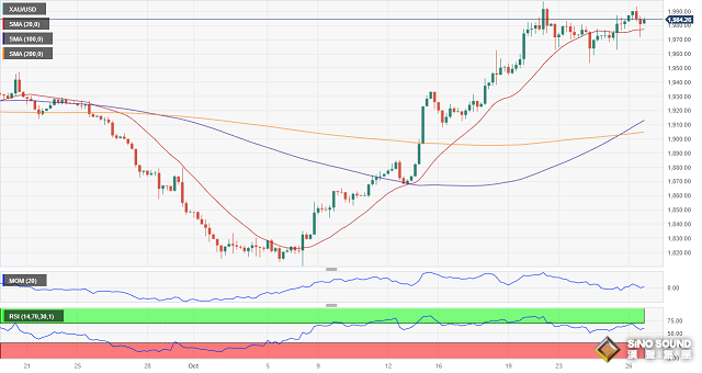 週五(10月27日)亞市盤中,現貨黃金短線突然急漲,金價正逼近1990美元/盎司關口。FXStreet首席分析師Valeria Bednarik撰文,對黃金技術前景進行分析。